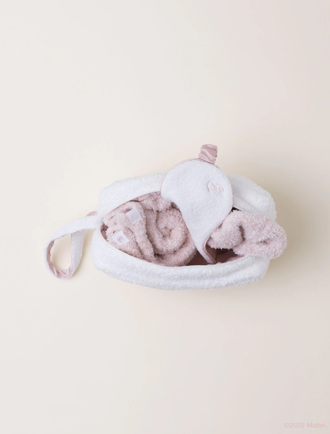 Our new set has everything you need to feel pampered and live the Barbie™ Dream Life at home or on the go: CozyChic Socks and Scrunchie with the iconic Barbie™ silhouette brand logo, and satin-lined sleep mask with embroidered "B" monogram. All items fit neatly in a Barbie™ logo embroidered pouch, crafted from CozyChic yarn with silk satin lining, zipper closure, and wristlet strap. Imported.